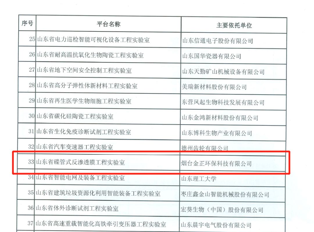 8月27日,山東省發(fā)展和改革委員會(huì)(以下簡(jiǎn)稱省發(fā)改委)發(fā)布《山東省發(fā)展和改革委員會(huì)關(guān)于發(fā)布2018年認(rèn)定山東省工程實(shí)驗(yàn)室(工程研究中心)名單的通知》(魯發(fā)改高技〔2018〕937號(hào)),煙臺(tái)金正環(huán)保科技有限公司申報(bào)的“山東省碟管式反滲透膜工程實(shí)驗(yàn)室”榮獲認(rèn)定。