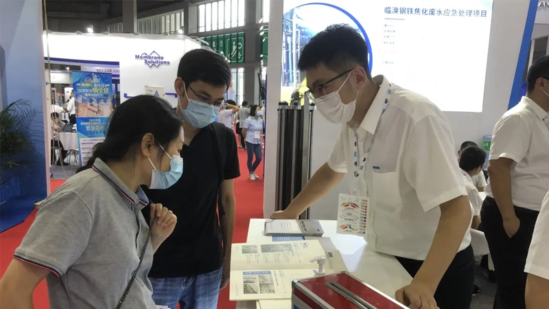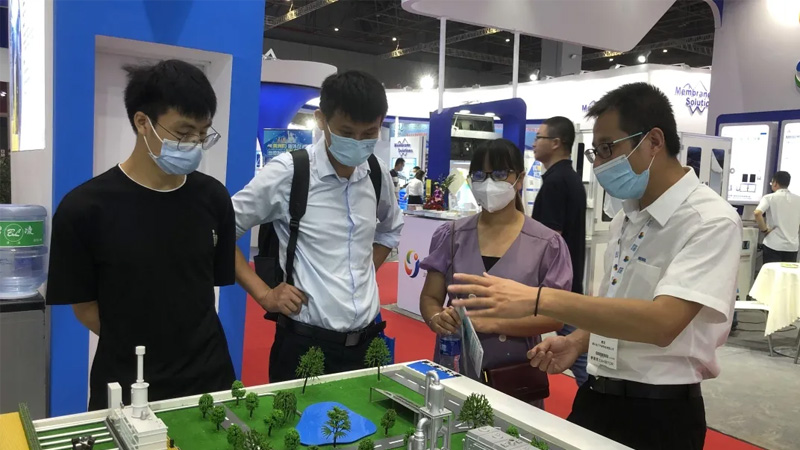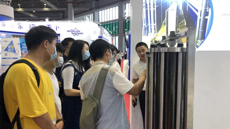 雖然展會期間天氣炎熱,但是酷暑并沒有阻擋住客戶的腳步和熱情。金正環(huán)保帶著第三代導流盤、100bar膜組件、DTRO試驗樣機和CDRO系列膜組件,以及各領域的解決方案、核心工藝包贏得了眾多工程公司和客戶的青睞,關注、咨詢的人絡繹不絕,熱鬧非凡。