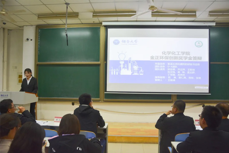 10月29日晚,煙臺(tái)大學(xué)化學(xué)化工學(xué)院年度金正環(huán)保創(chuàng)新獎(jiǎng)學(xué)金答辯活動(dòng)在學(xué)校綜合樓205室開(kāi)展,經(jīng)過(guò)學(xué)院初選,包含革新“涂”強(qiáng)團(tuán)隊(duì)等在內(nèi)的18支個(gè)人和團(tuán)隊(duì)進(jìn)入最終答辯環(huán)節(jié),大賽設(shè)一等獎(jiǎng)3名,二等獎(jiǎng)4名,三等獎(jiǎng)3名,共10位個(gè)人/團(tuán)隊(duì)獲獎(jiǎng)。