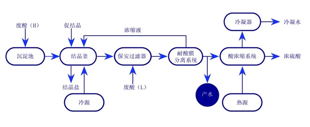為實現(xiàn)酸性廢水資源化利用,降低酸性廢水處理過程中危險廢棄物產(chǎn)生量,減輕企業(yè)環(huán)保壓力和廢棄物處置費用。煙臺金正環(huán)保以技術創(chuàng)新為驅動,充分發(fā)揮產(chǎn)學研協(xié)同創(chuàng)新機制,成立研發(fā)團隊,并聯(lián)合知名專家牛青山博士,開發(fā)了耐酸膜材料,并在耐酸膜組件、酸性廢水處理工藝及系統(tǒng)中深入研究與實踐,為不同酸性廢水、廢酸的綜合治理提供了切實可行的解決方案,改變了傳統(tǒng)技術中和法酸性廢水粗放型處理的弊端,實現(xiàn)了酸和鹽資源的雙重回收利用。