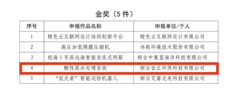 近日,經(jīng)過初評、終審、公示等環(huán)節(jié),煙臺金正環(huán)保參賽作品《酸性廢水處理系統(tǒng)》榮獲煙臺市第三屆“市長杯”工業(yè)設計大賽金獎。