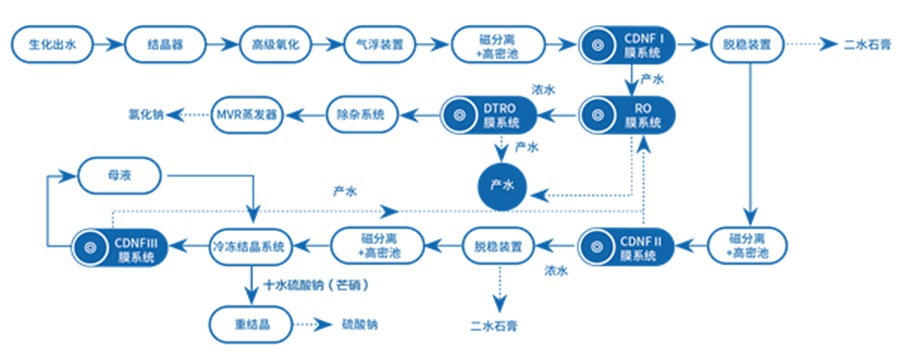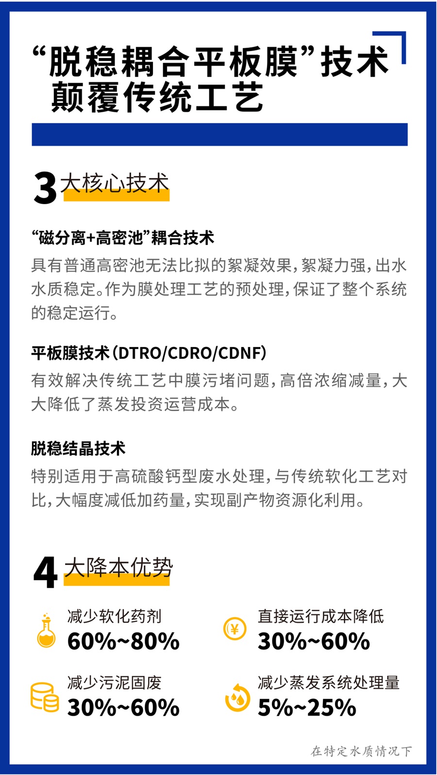 在某些工況下,采用“脫穩(wěn)耦合平板膜”技術(shù),減少加藥量,以更短的流程實現(xiàn)化工廢水的零排放,處理成本降低20%~30%。