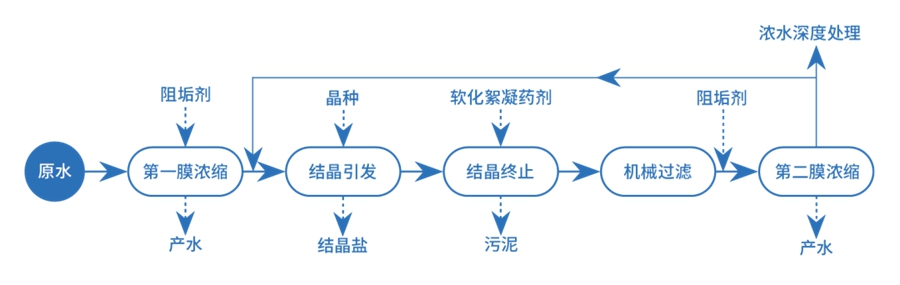 當(dāng)前,傳統(tǒng)工藝處理此類(lèi)廢水,存在很多不足:工藝鏈冗長(zhǎng)、藥劑消耗量大、產(chǎn)生的固廢污泥難處置、膜易結(jié)垢不利于系統(tǒng)穩(wěn)定運(yùn)行、雜鹽產(chǎn)出量大,最終使水處理成本高昂,也無(wú)法滿(mǎn)足環(huán)保要求。