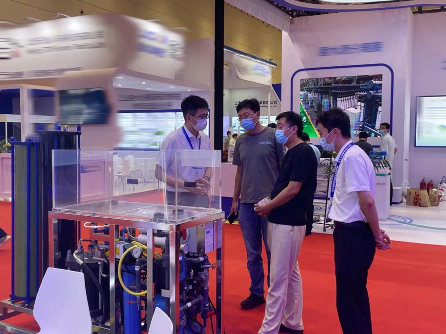 本次展會展出的專利膜組件-100barDTRO膜組件、CDRO膜組件、小型海水淡化設(shè)備等水處理設(shè)備受到與會人員的高度關(guān)注,在場的工作人員與來訪客戶在產(chǎn)品技術(shù)亮點(diǎn)、解決方案成本優(yōu)勢、合作意向等諸多方面一一進(jìn)行了深入的溝通和交流。